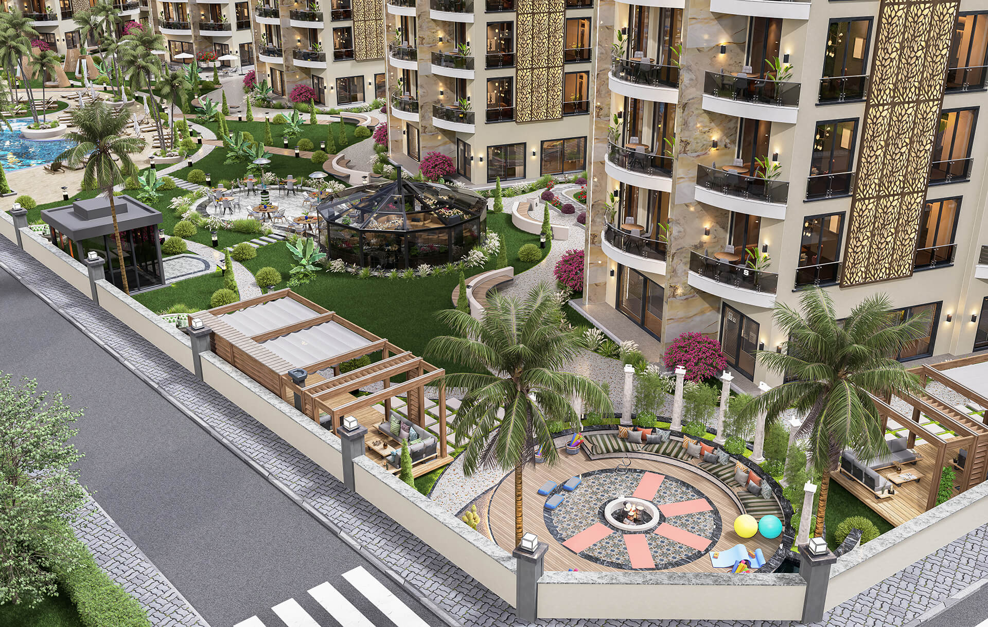 Oba Privilege is a residential complex with a thoughtfully designed infrastructure that allows residents to enjoy a full life surrounded by comfort. The complex features a 700 m² outdoor pool with a jacuzzi, a children’s pool, and a playground for the little ones. Additionally, there is a unique open-air cinema, perfect for spending evenings with family and friends. The complex also offers relaxation areas, a dedicated yoga zone, workspaces, and a library for quiet reading or work.