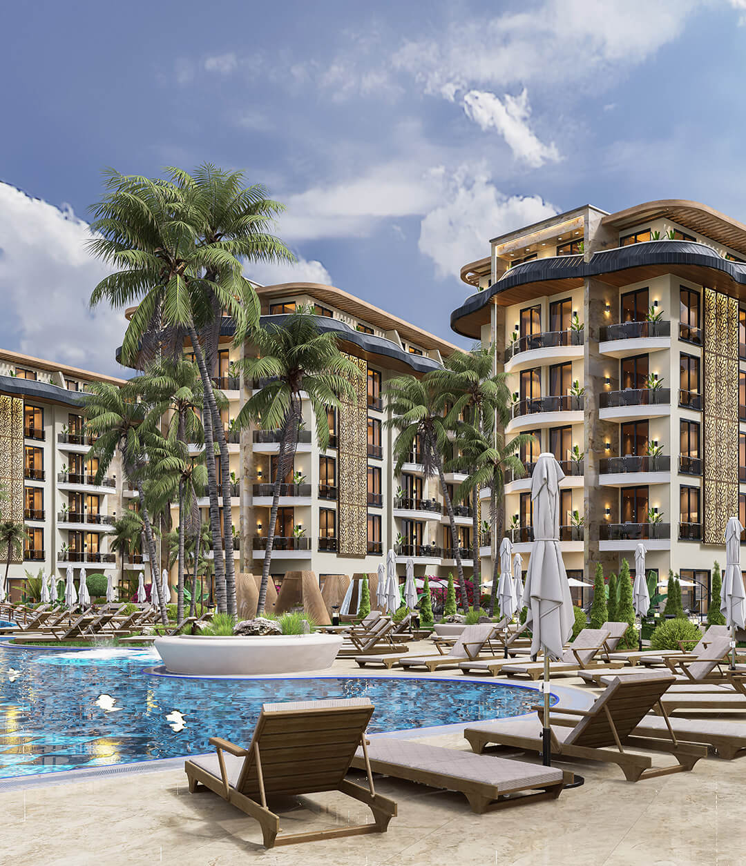 Oba Privilege is a new luxury residential complex located in the resort city of Alanya, Turkey. Designed for those who value comfort and a high standard of living, the complex combines premium-class infrastructure with close proximity to the main attractions of the resort. Spanning a total area of 13,000 m², with 10,000 m² dedicated to lush gardens and recreational areas, the complex features 252 meticulously designed apartments.